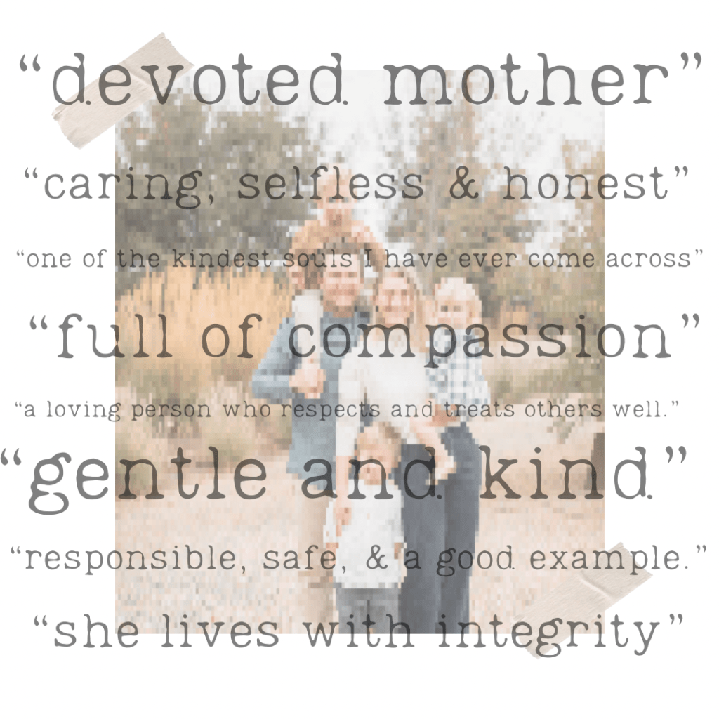 “Katie is a devoted, responsible mother of three young children. She is a loving person who respects and treats others well.”